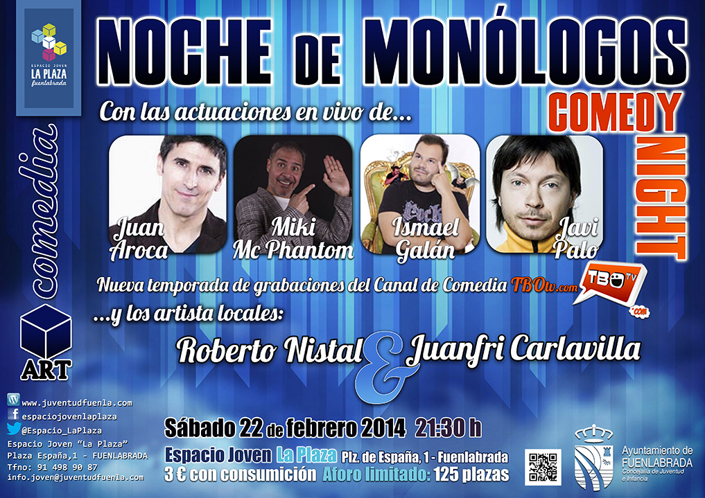 Las Comedy Nights son un espectáculo televisado de monólogos de humor, música, entrevistas, reporteros y muchas risas. En esta ocasión contarán con las actuaciones de cómicos profesionales de gran nivel como Juan Aroca, Miki Mc Phantom, Ismael Galán y Javi Palo. Al elenco de monologuistas se sumarán los artistas locales Roberto Nistal y Juanfri Carlavilla.