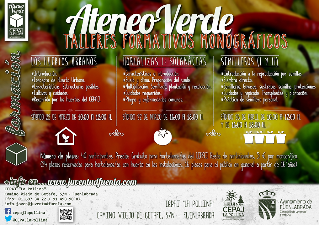 Ya puedes consultar los listados de admitidos/as en los monográficos sobre huertos urbanos y hortalizas solanáceas que tendrán lugar el próximo sábado 22 de marzo en el CEPAJ «La Pollina». Si estás interesado/a en participar, aún hay plazas disponibles.