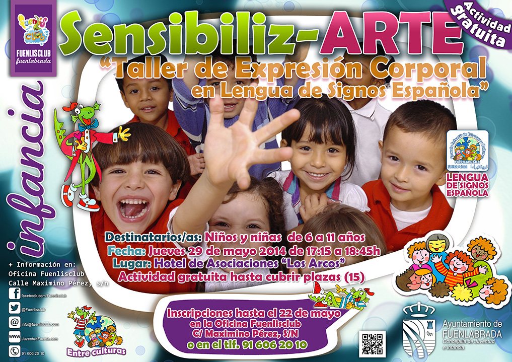El jueves 29 de mayo en el Hotel de Asociaciones «Los Arcos« desarrollaremos un taller de expresión corporal en Lengua de Signos Española al que queremos invitar a participar a todos/as los/as niños/as interesados/as en pasar una divertida tarde junto a los/as participantes en el taller Sensibiliz-Arte.
