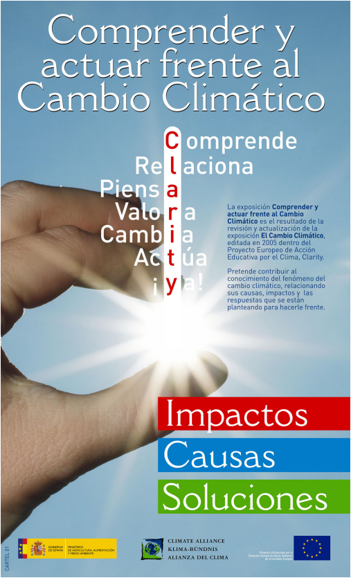 La exposición El Cambio Climático nace del Proyecto Europeo de Acción Educativa por el Clima, Clarity, en el que participan cinco socios europeos: el Organismo Autónomo Parques Nacionales (Ministerio de Agricultura, Alimentación y Medio Ambiente de España), la Organización No Gubernamental eslovena E-Forum y las Alianzas del Clima de Italia, Austria y Luxemburgo, coordinados por el Secretariado Europeo de la Alianza del Clima.