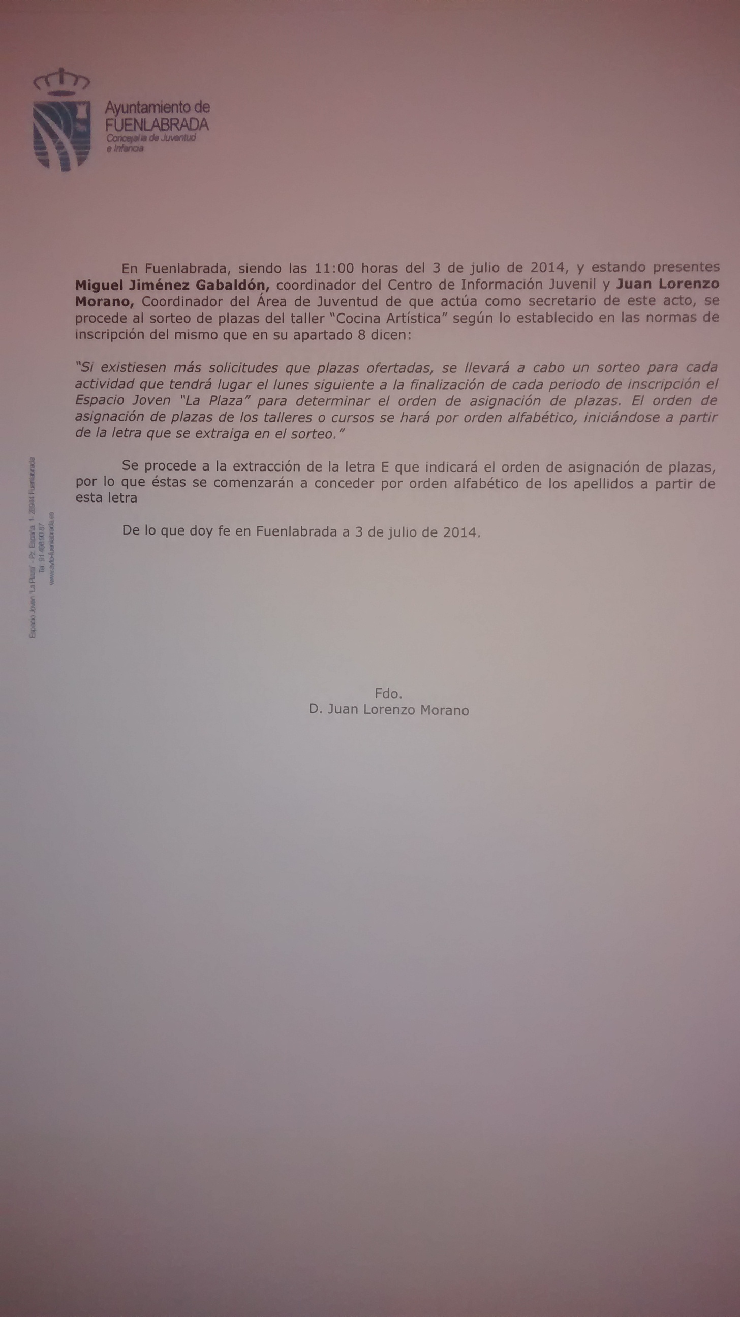 Puedes consultar el listado pinchando en el siguiente ENLACE y ver el acta del sorteo en este otro ENLACE.