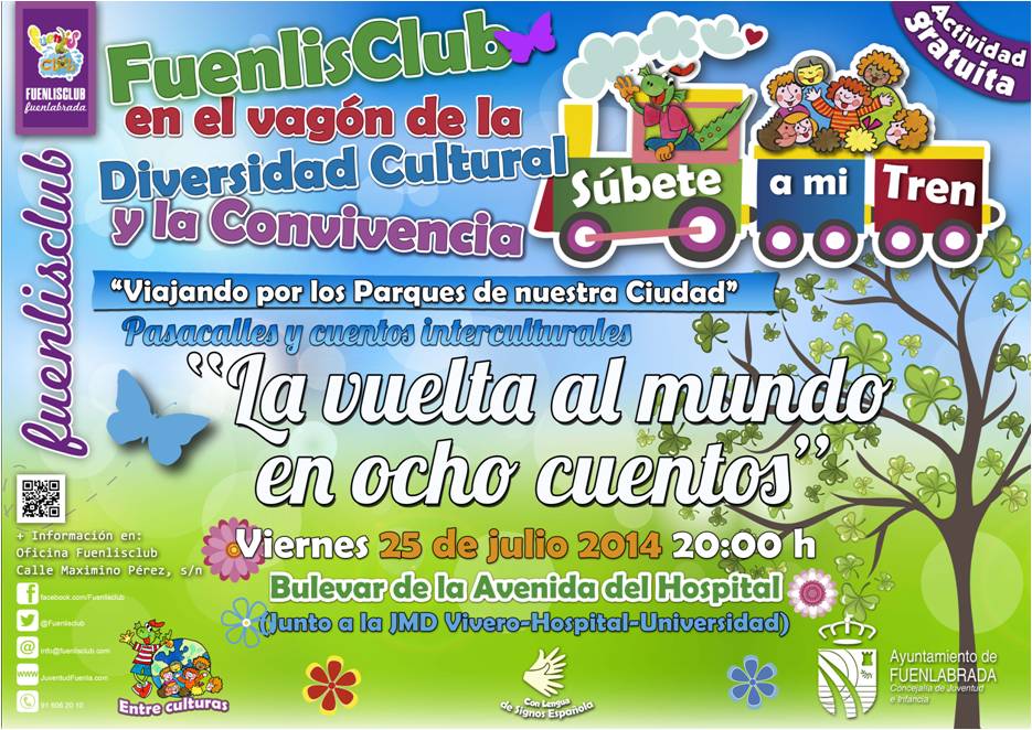 El próximo viernes 25 de julio a las 20:00 horas en el Bulevar de la Avenida del Hospital, «Súbete a mi Tren» termina su gira de verano por los parques de la ciudad con la representación de « La vuelta al Mundo en Ocho Cuentos«.