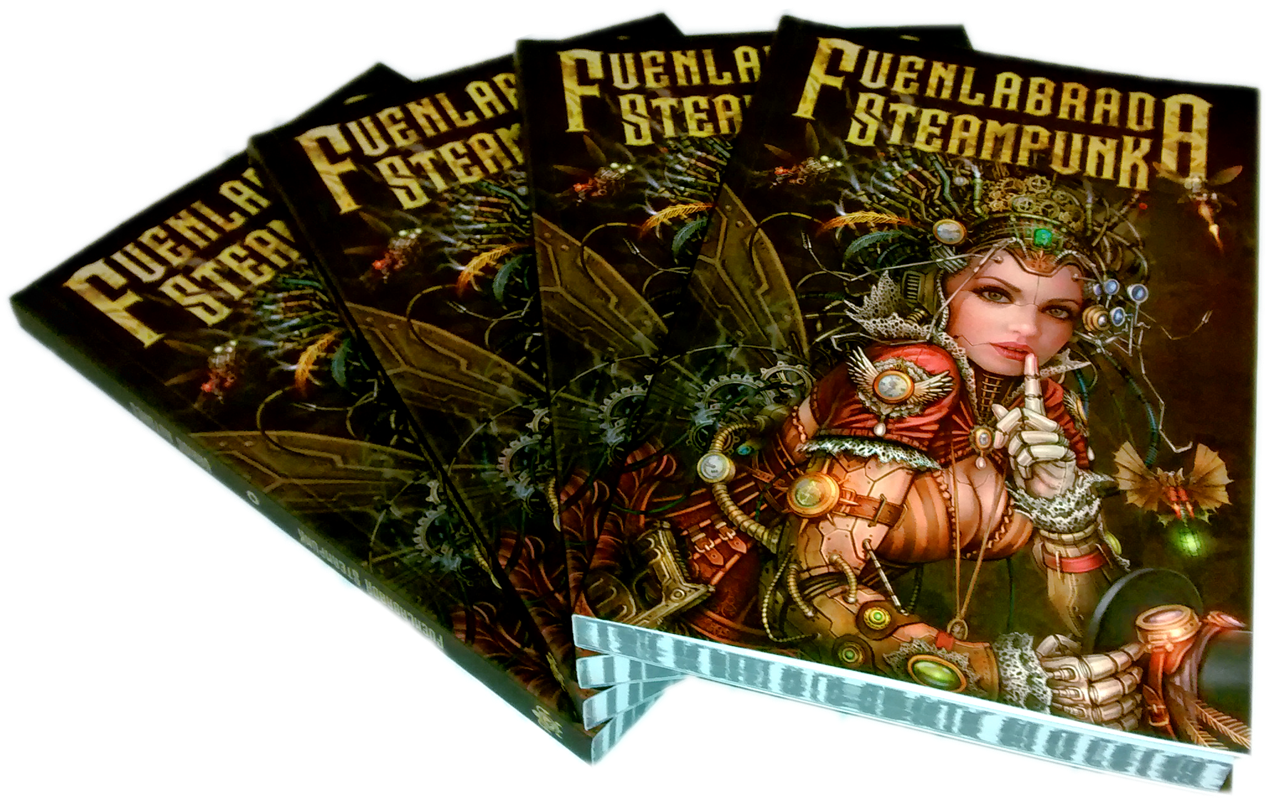 Detalle del libro editado con los relatos e ilustraciones de los/as ganadores/as de la I Edición del Certamen de Relatos e Ilustración Fuenlabrada Fantástica