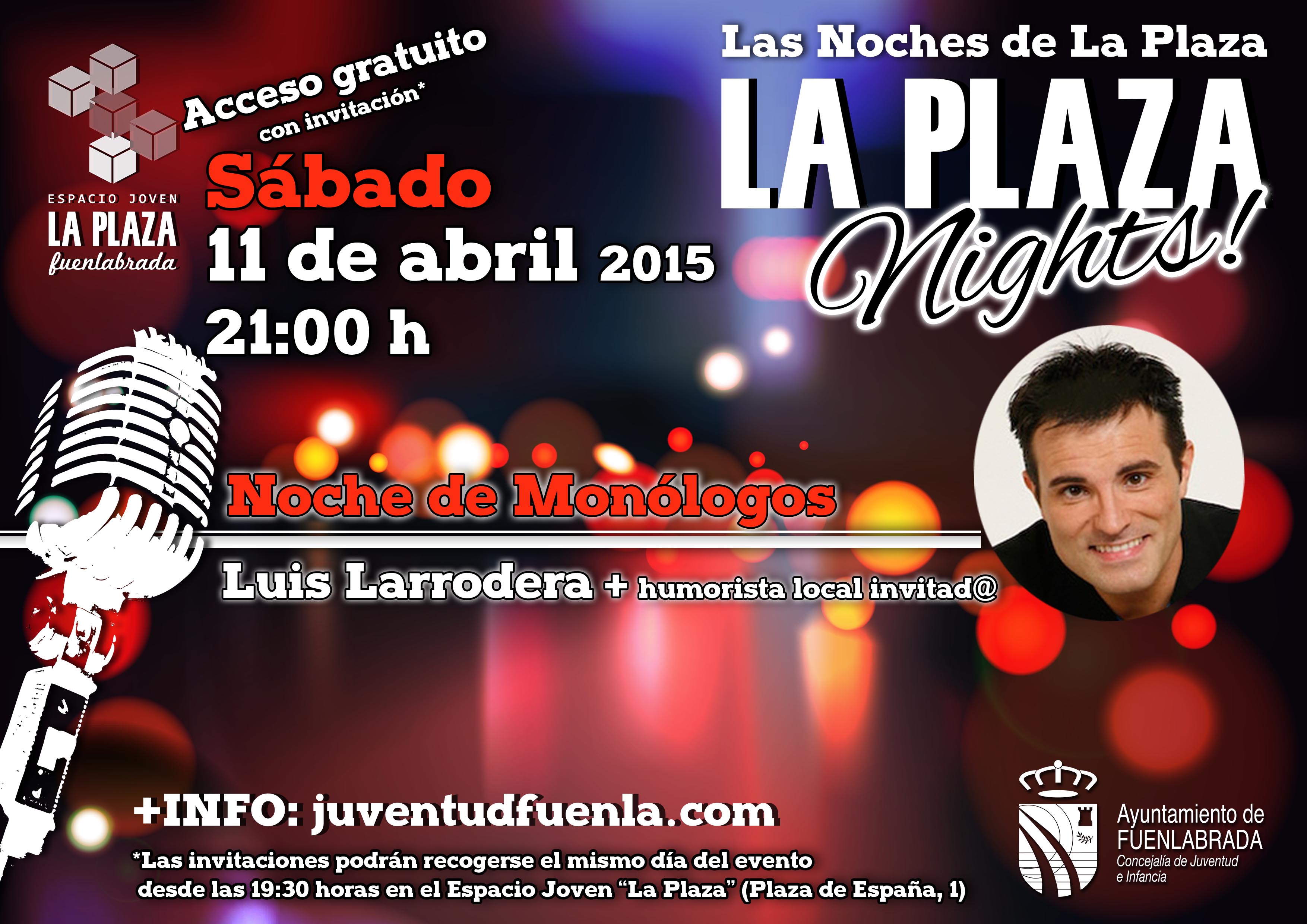 En el programa cultural «Las Noches de la Plaza», la Sala de las Artes del Espacio Joven “La Plaza” acoge durante los fines de semana conciertos, obras de teatro, sesiones de monólogos y diferentes espectáculos que vienen a sumarse a la amplia oferta cultural que se desarrolla en la red de teatros de la ciudad. El objetivo de esta nueva iniciativa de la Concejalía de Juventud e Infancia es el de ofrecer a los/as jóvenes fuenlabreños/as una nueva alternativa de ocio basada en una programación cultural de calidad.