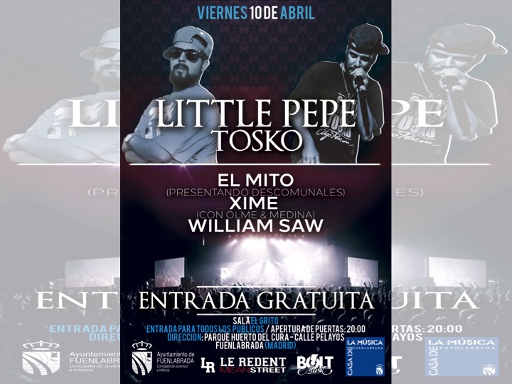 Los/as asistentes podréis disfrutar de las actuaciones de Little Pepe, Tosko, El Mito, Xime y William Saw.