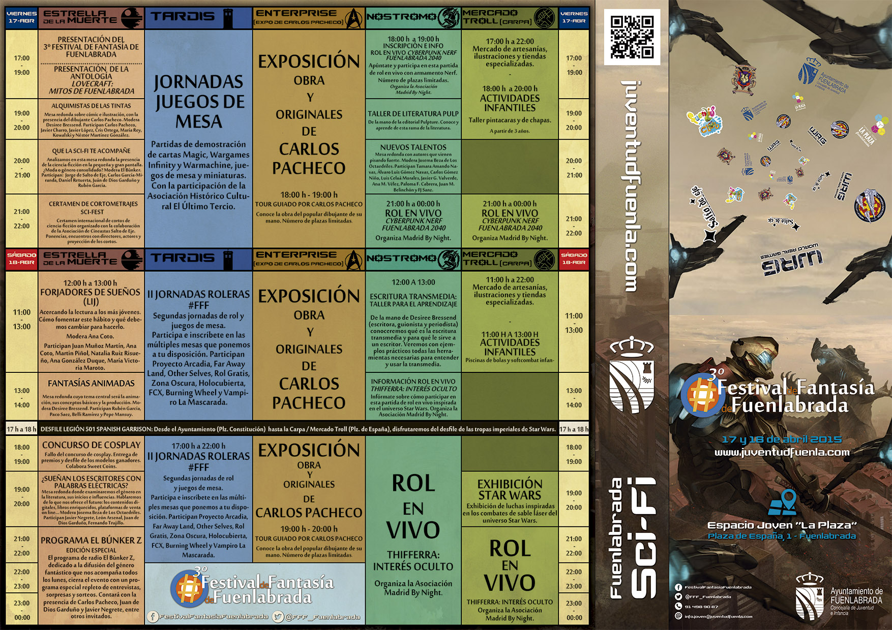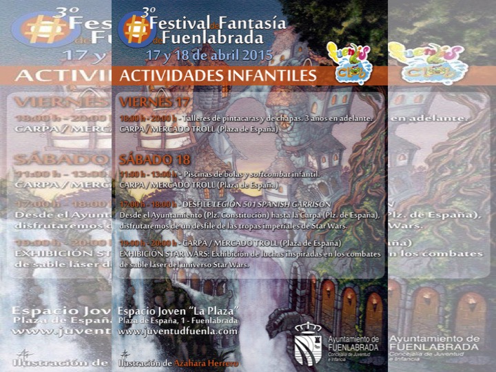 La III Edición del Festival de Fantasía de Fuenlabrada está dedicada este año al mundo de la ciencia ficción. Durante el fin de semana se sucederán presentaciones literarias, ponencias, conferencias, desfiles y también las actividades dirigidas a público infantil y familiar desarrolladas con la colaboración de FuenlisClub que a continuación detallamos: