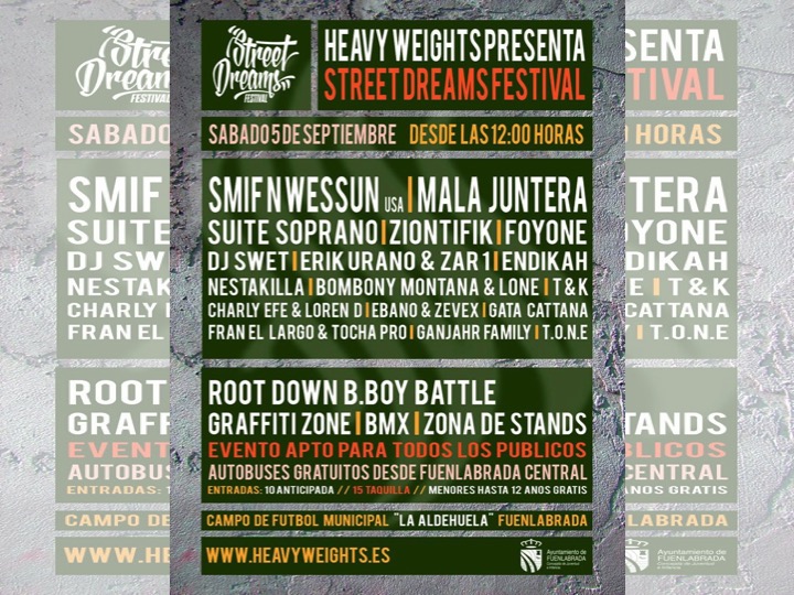 El Street Dreams Festival es una iniciativa promovida por Heavy Weights que cuenta con la colaboración de la Concejalía de Juventud e Infancia.
