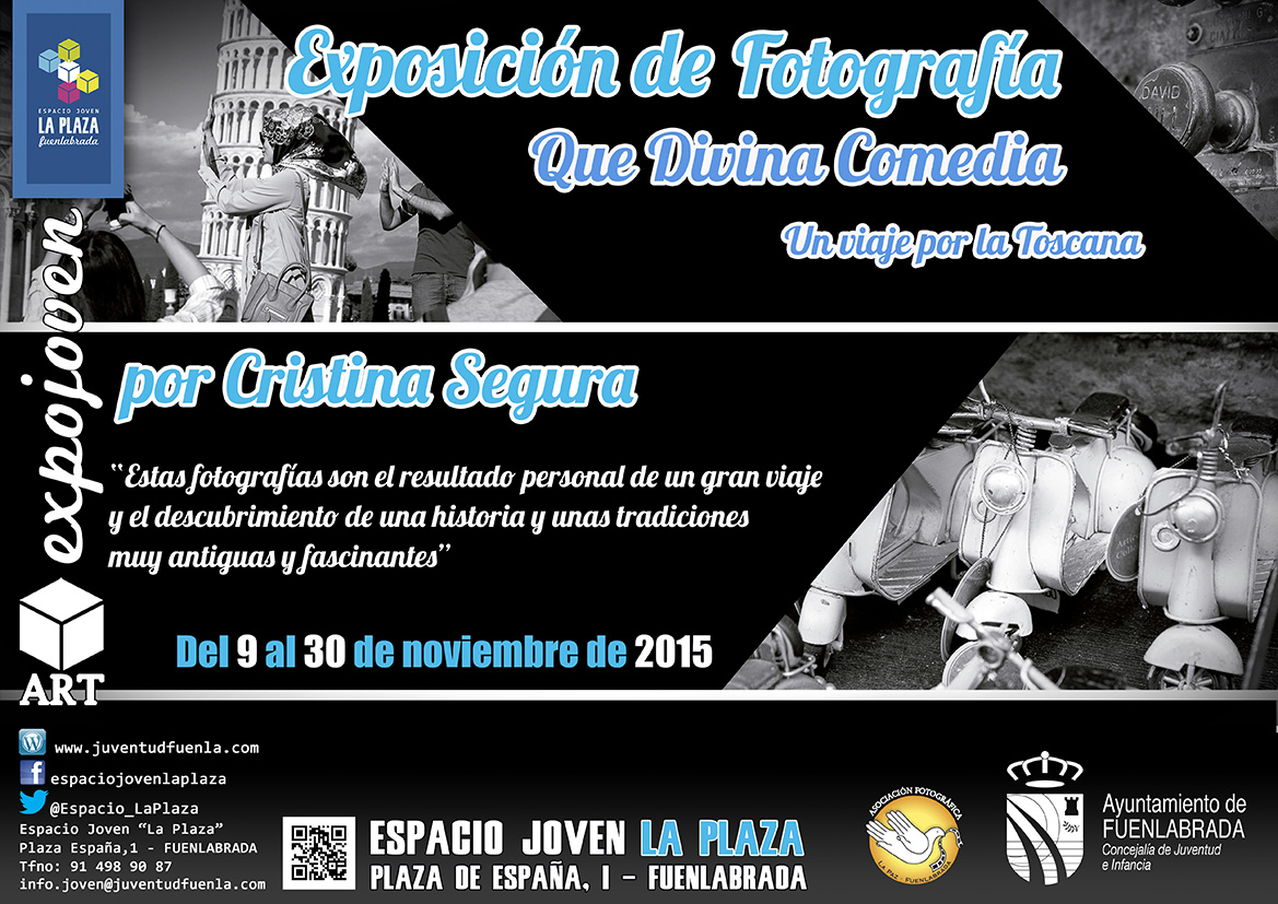 Entre el 9 y el 30 de noviembre el Espacio Joven «La Plaza» acoge la exposición fotográfica «Que Divina Comedia» Un viaje por la Toscana. La fotógrafa Cristina Segura, perteneciente al colectivo Afopaz, muestra el resultado de su experiencia personal por la Toscana.