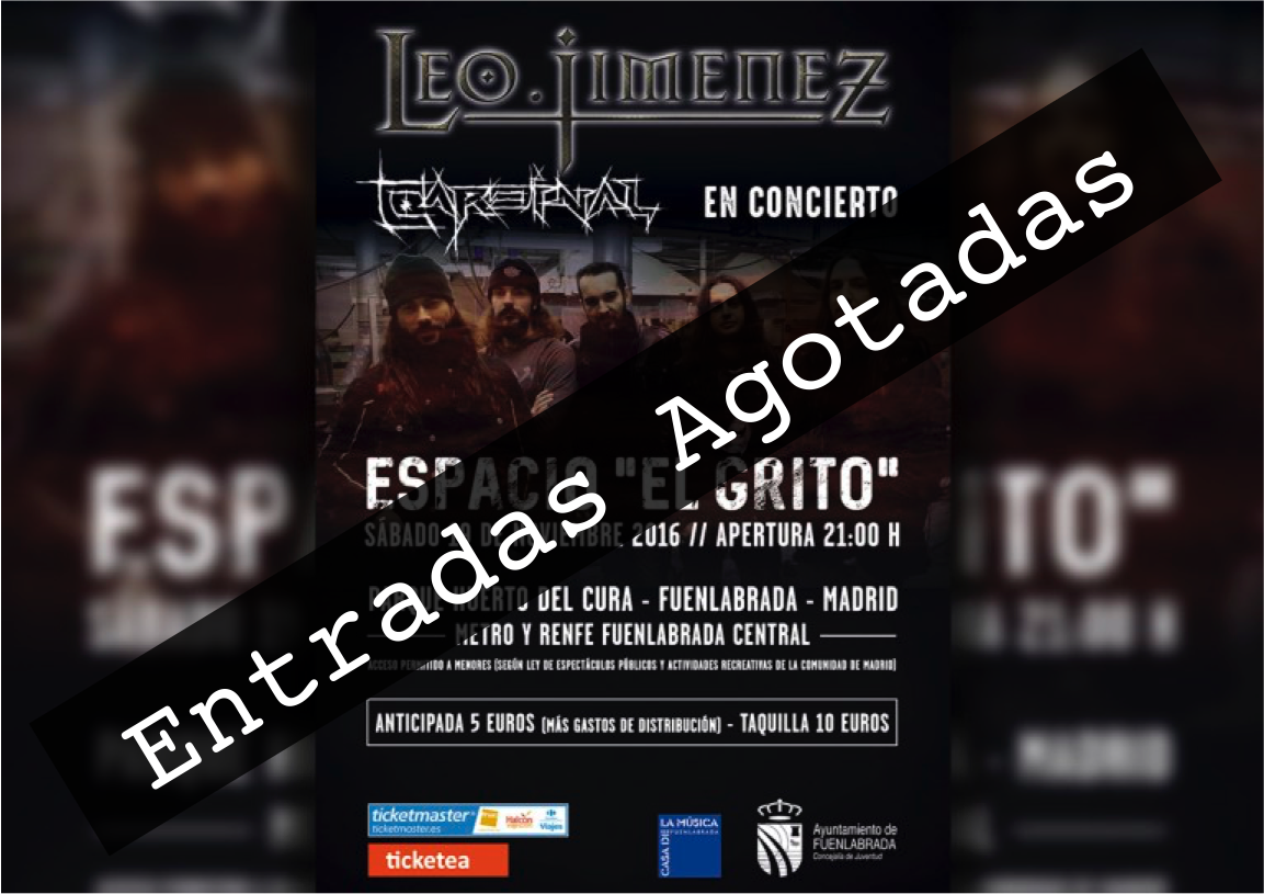 El concierto contará como cabeza de cartel con el fuenlabreño Leo Jiménez, una de las más importantes figuras del panorama del rock-metal en español. A lo largo de sus 20 años de carrera musical, Leo ha sido el vocalista de bandas tan importantes como Saratoga y Stravaganzza y ha cosechado multitud de premios como el de “Mejor Vocalista Nacional” otorgado por las revistas HeavyRock y KERRANG. En el año 2009 comenzó una carrera en solitario en la que ya ha editado cuatro discos que han sido muy bien acogidos por la crítica y el público tanto nacional como de los más de diez países que ha visitado en sus giras por Sudamérica. El último proyecto de Leo Jiménez es su disco ”La Factoría del Contraste” publicado el 1 de abril de 2016. Actualmente la banda que acompaña a Leo Jiménez está formada por Edu Fernández al bajo, Antonio Pino y Rufo J. Cantero a las guitarras y Carlos Expósito en la batería.Puedes ampliar información del artista visitando su web oficial.