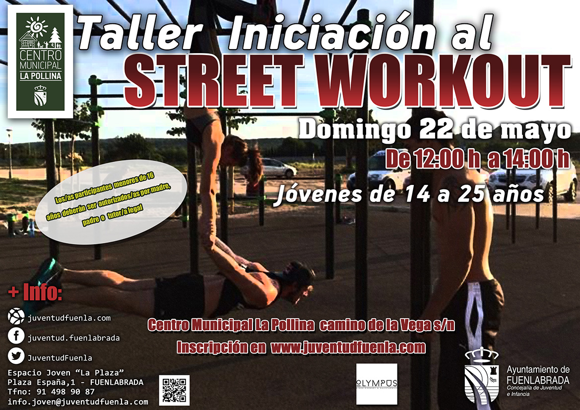 La Concejalía de Juventud e Infancia en colaboración con la asociación Olympus Workout, organiza este taller de iniciación al street workout que tendrá lugar el próximo 22 de mayo en el Centro Municipal La Pollina.