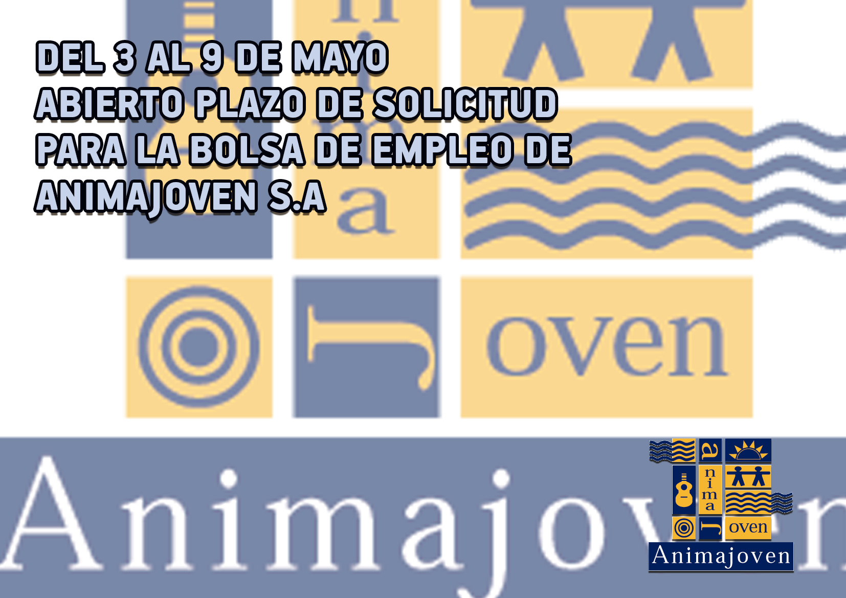 ANIMAJOVEN S.A. convoca una bolsa de empleo de personal laboral no permanente y de duración determinada, para cubrir diferentes puestos de monitores/as de ocio y tiempo y libre, educación infantil, educación especial y de educadores/as, en función de las necesidades de este perfil en los proyectos que gestiona, fundamentalmente durante periodos de vacaciones escolares, determinados proyectos de intervención durante el curso escolar y actividades de carácter puntual en el ámbito infantil, familiar y juvenil.