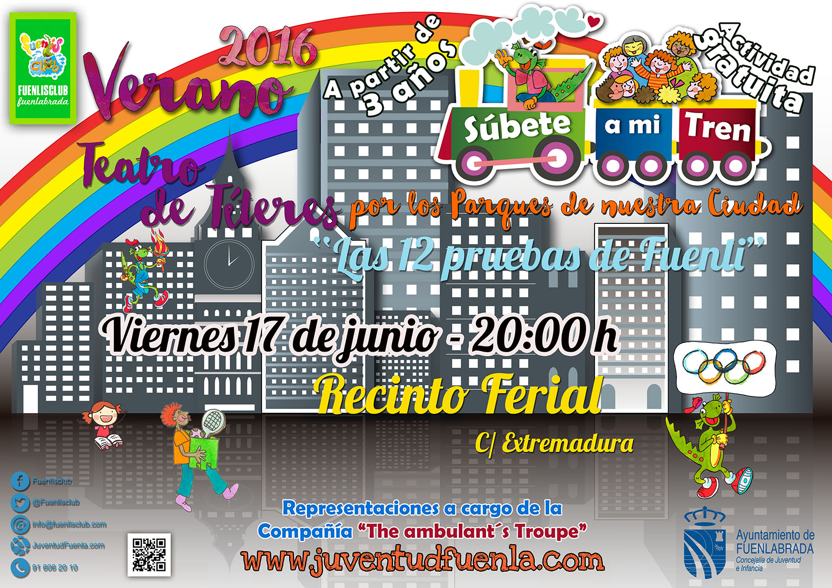 «Súbete a mi Tren” es un programa de la Concejalía de Juventud e Infancia que está dirigido a niños, niñas y sus familias y que tiene como objetivo ofrecer actividades de carácter participativo y cultural que combinen la diversión y el disfrute con la educación en valores y la sensibilización. La primera etapa del programa arrancó en el mes de febrero con 14 representaciones en diferentes Centros de Educación Infantil y primaria, con más de 1.900 asistentes a la obra «Las 12 Pruebas de Fuenli».