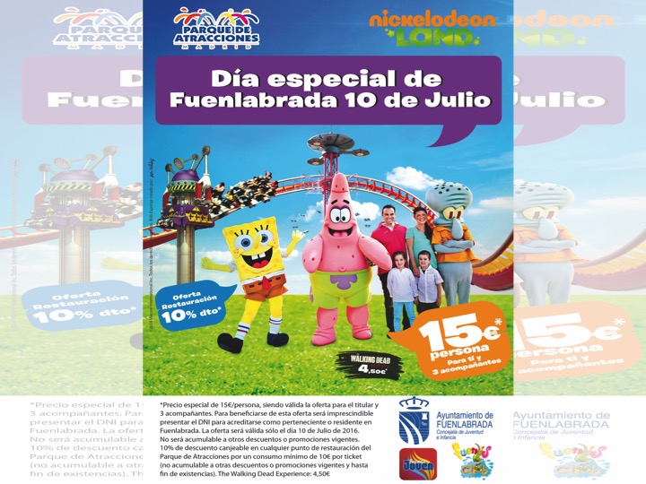 El día 10 de julio se celebrara un nuevo día de Fuenlabrada en el Parque de Atracciones de Madrid con importantes descuentos para todos/as los/as vecinos/as de la ciudad.