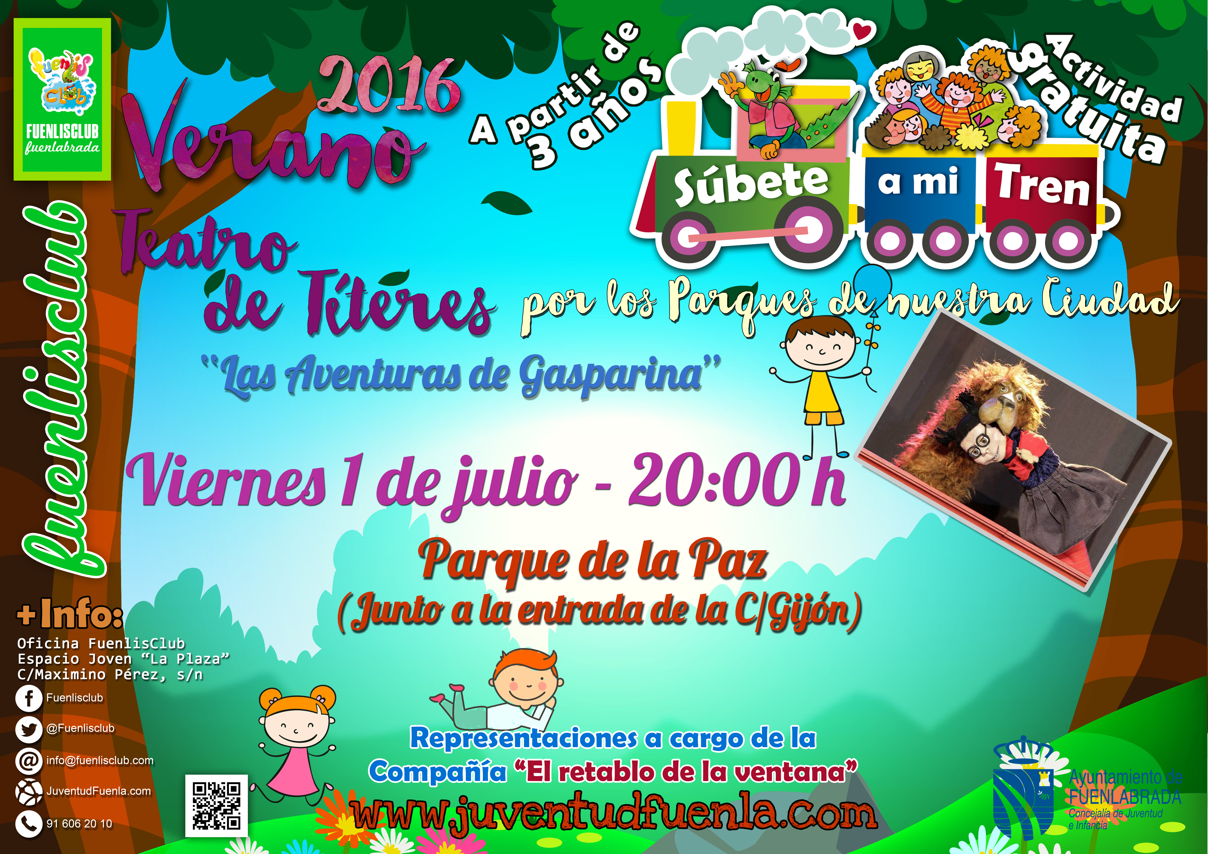 Súbete a mi Tren” es un programa de la Concejalía de Juventud e Infancia del Ayuntamiento de Fuenlabrada dirigido a niños, niñas y sus familias cuya finalidad es la de ofrecer actividades gratuitas de carácter participativo y cultural que combinen la diversión y el disfrute con la educación en valores y la sensibilización a través de la dinamización de espacios de referencia para la infancia de la ciudad. Este programa lo componen distintos vagones cargados de contenidos que simbólicamente se irán desplazando por la ciudad durante todo el año con más de 30 representaciones durante 2016.
