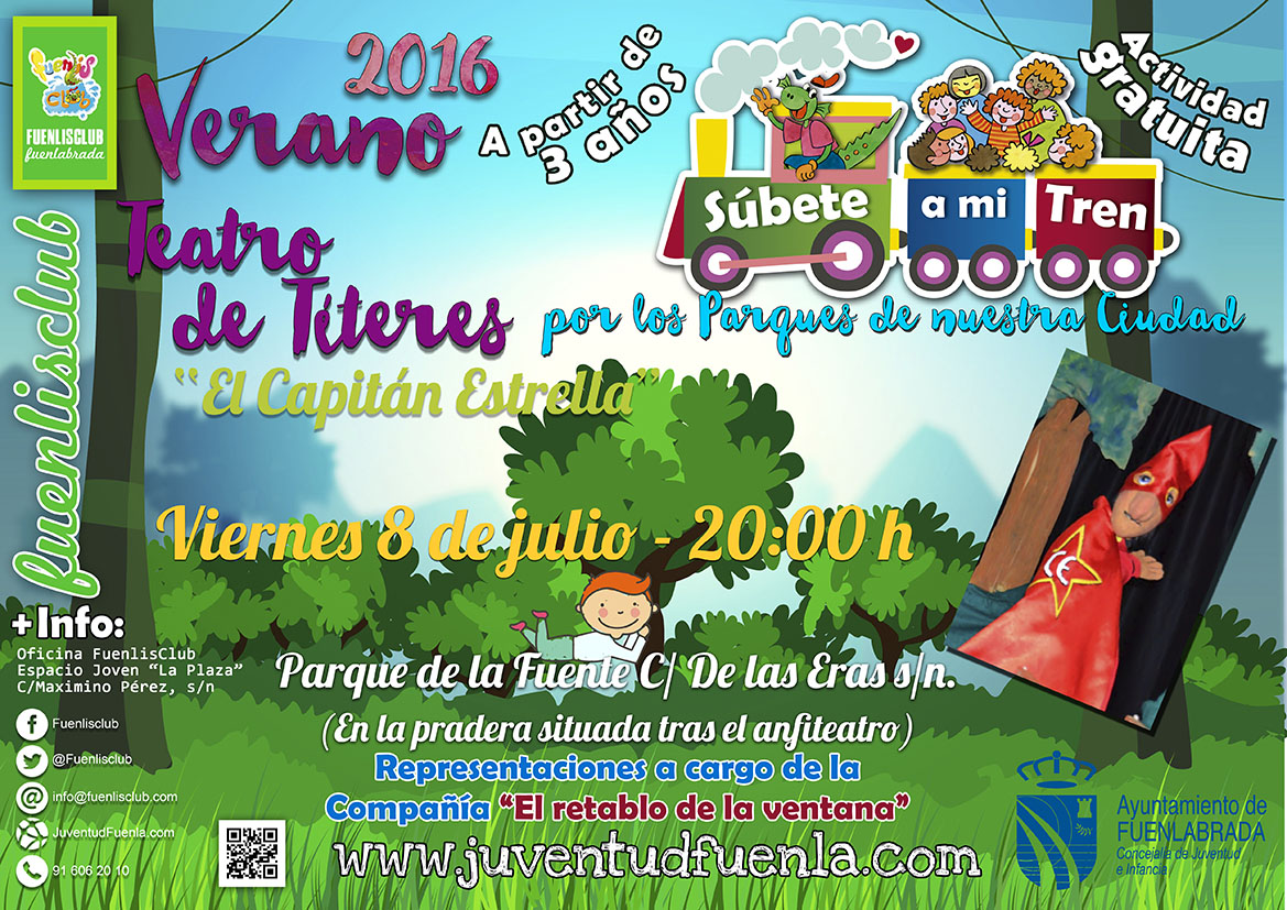 El viernes 8 de julio «Súbete a mi Tren» sigue con su viaje por los parques de la ciudad con la obra de teatro de títeres “El Capitán Estrella”.