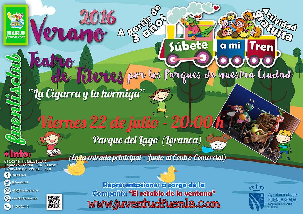 El viernes 22 de julio «Súbete a mi Tren» sigue con su viaje por los parques de la ciudad con la obra de teatro de títeres “La Cigarra y hormiga”.