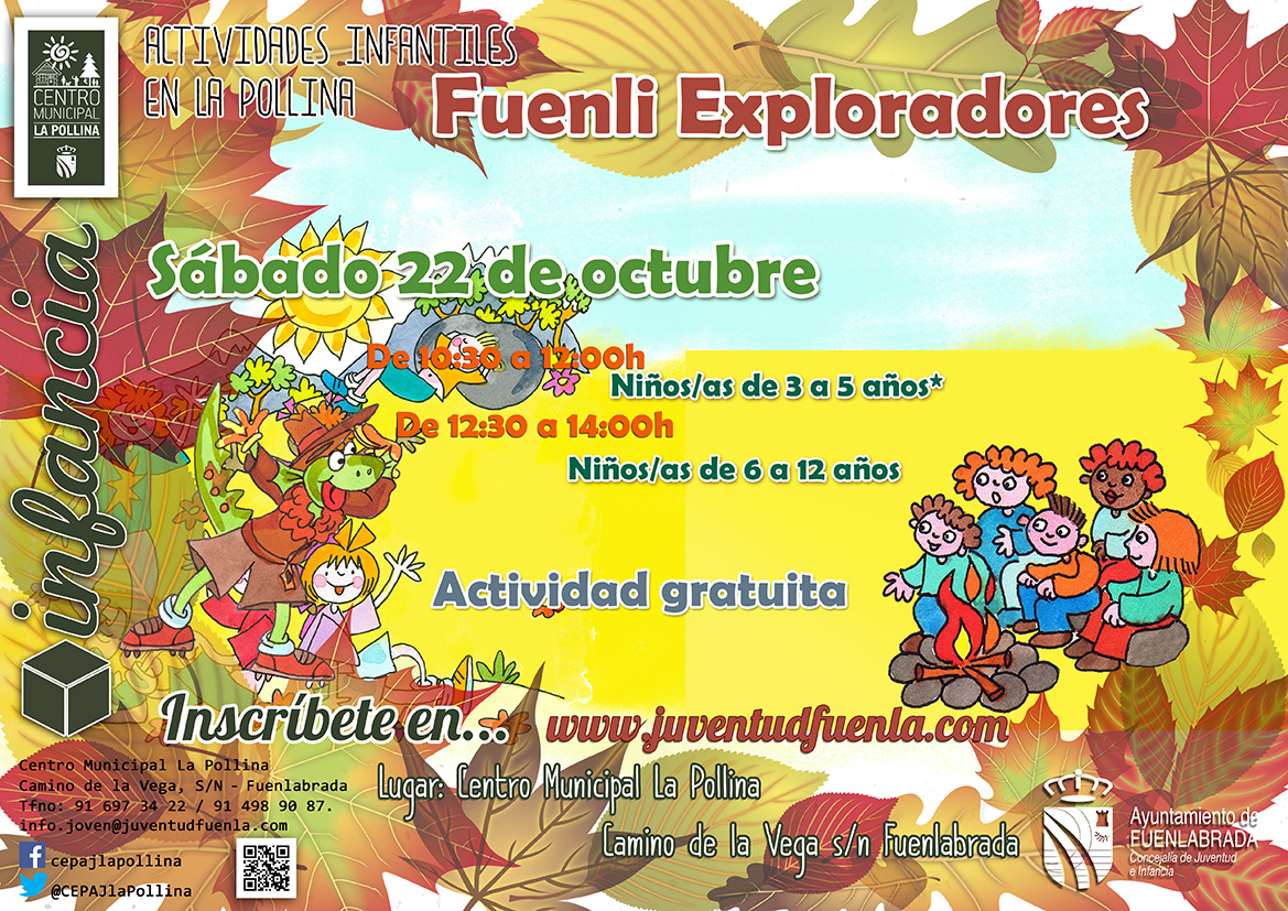 El sábado 22 comienzan los talleres del proyecto Fuenli Exploradores es una propuesta de actividades para niños y niñas de 3 a 12 años. El primer taller girará en torno al otoño. No te lo pierdas!