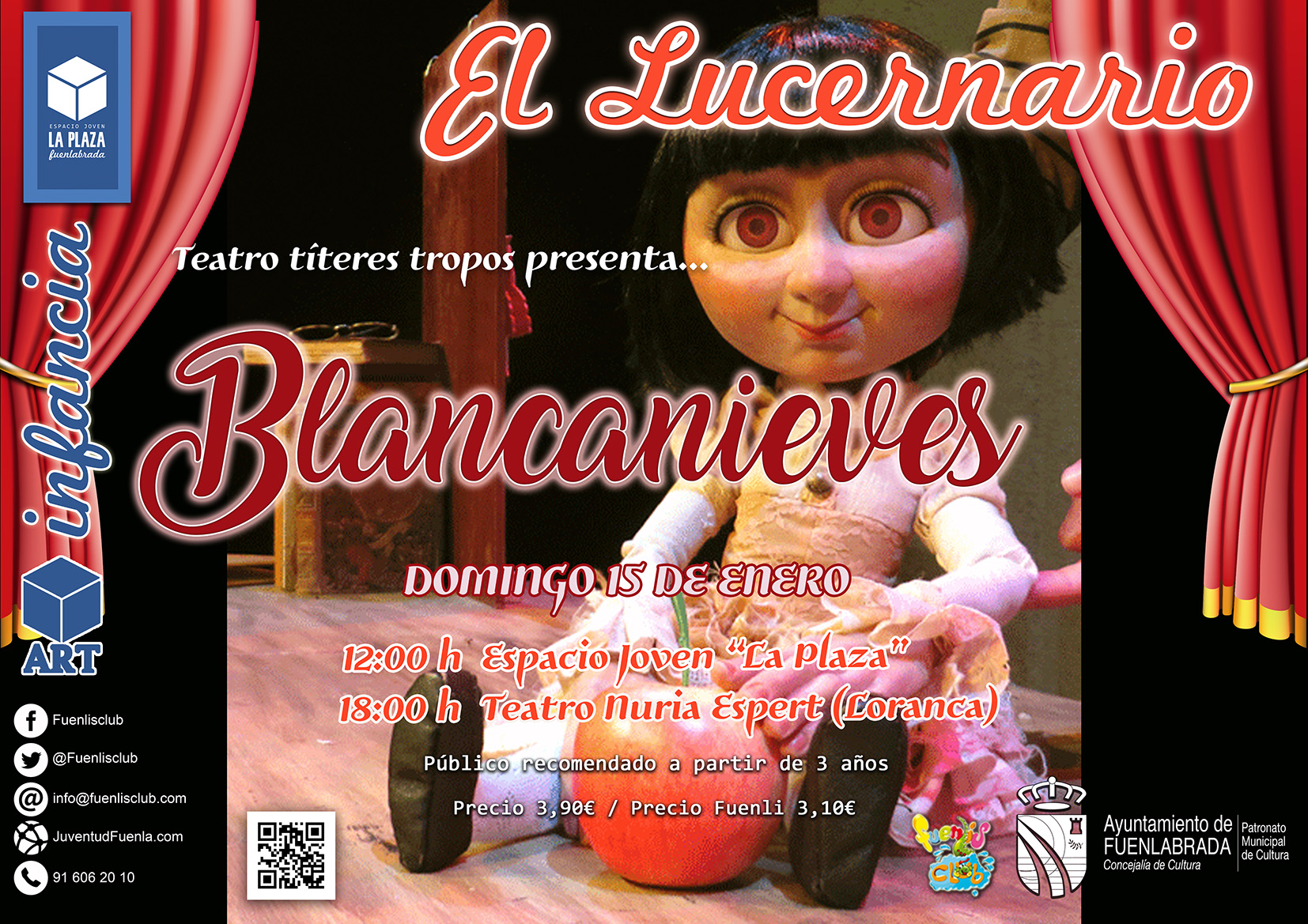 El domingo 15 de enero a las 12:00 h. vuelve El Lucernario después de la pausa navideña y nos acerca al Espacio Joven «La Plaza» la obra de teatro de títeres «Blancanieves» de Teatro Títeres Tropos.