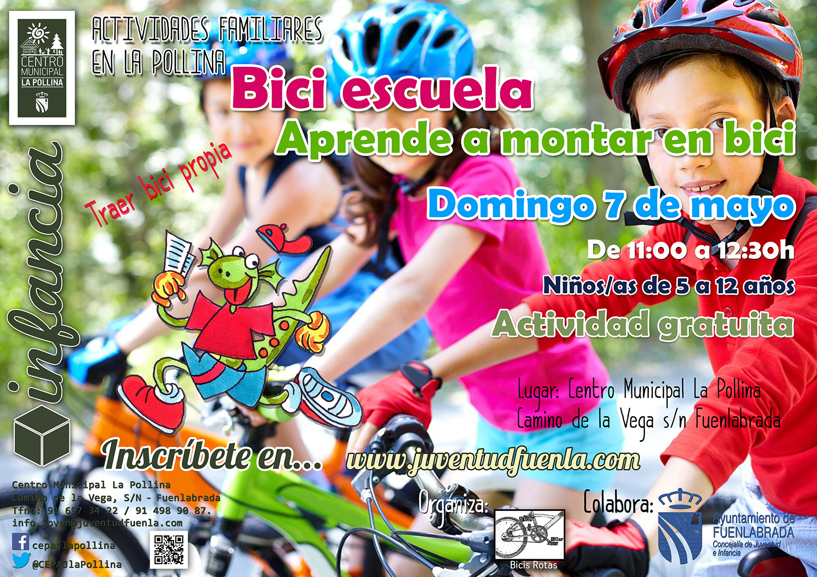 El Centro Municipal La Pollina en colaboración con la Asociación Bicis Rotas oferta este taller para que los/as más peques aprendan a montar en bici.