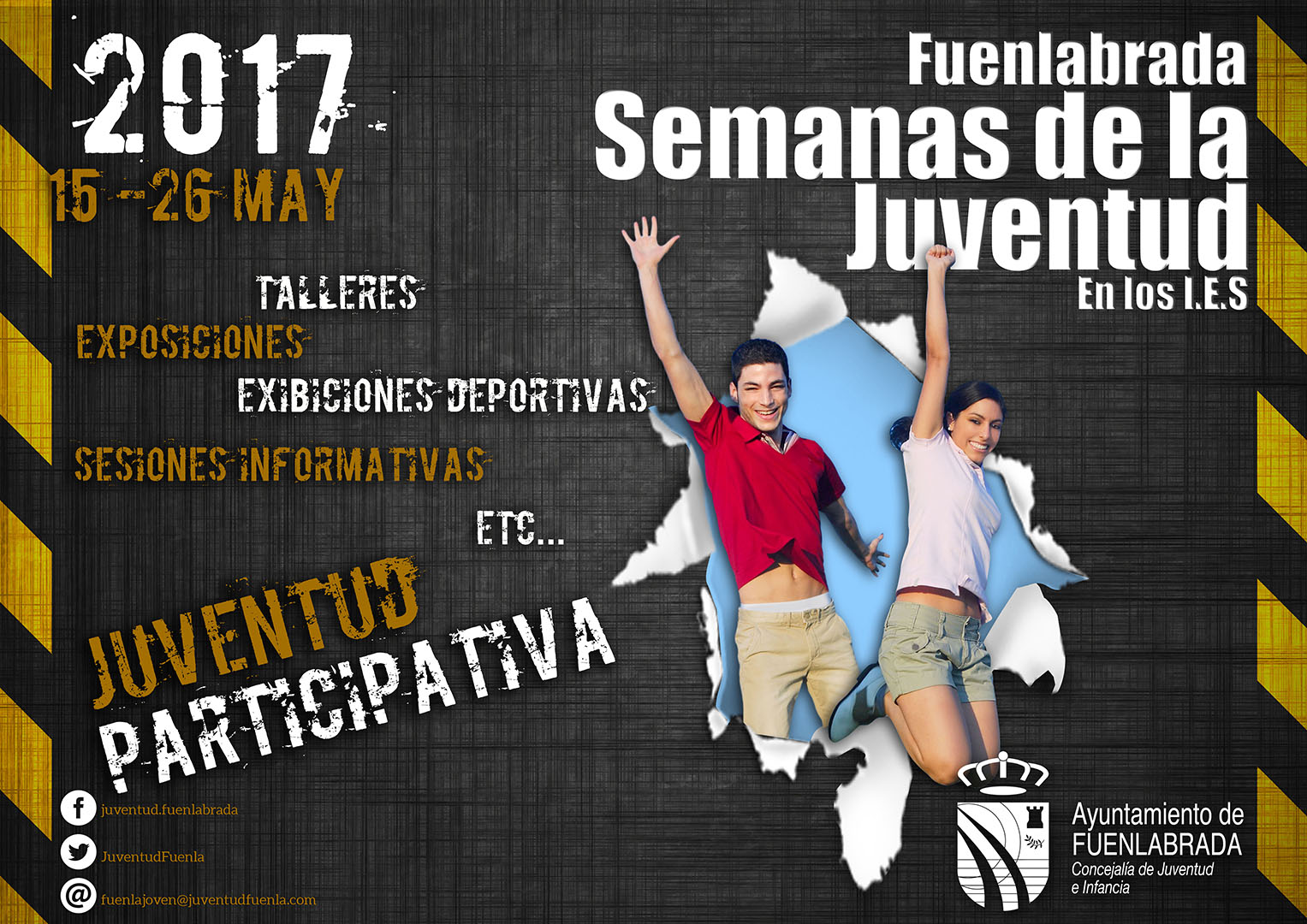 La Concejalía de Juventud e Infancia en colaboración con asociaciones juveniles de la ciudad, organiza entre el 15 y el 26 de mayo las semanas de la Juventud en 4 Institutos públicos de Fuenlabrada. Los/as alumnos/as podrán disfrutar de talleres, ponencias, master class, stands informativos y exposiciones.