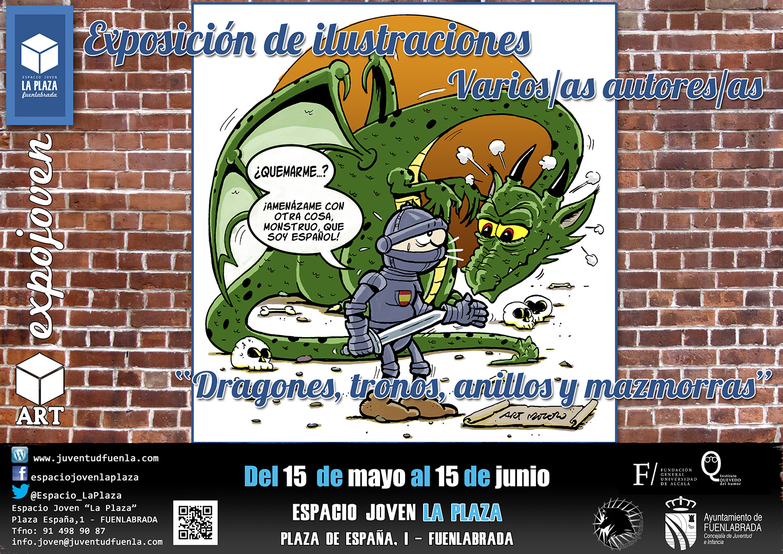 El Espacio Joven «La Plaza» acoge entre el 15 de mayo y el 15 de junio, la exposición «Dragones, tronos, anillos y mazmorras» en colaboración con la Asociación Cultural Lupus in Fabula y el Instituto Quevedo del Humor.
