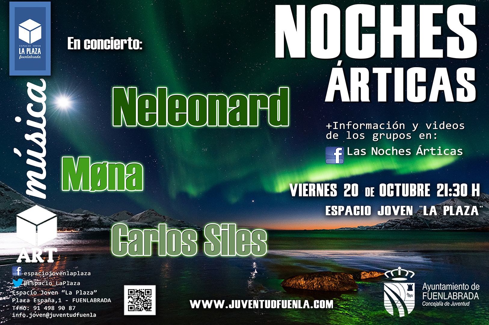 El 20 de octubre vuelven Las Noches Árticas con un nuevo concierto en acústico a partir de las 21:30 h en el Espacio Joven La Plaza. Bajo este nombre la Concejalía de Juventud e Infancia ofrece una alternativa de ocio basada en la buena música en formato acústico.
