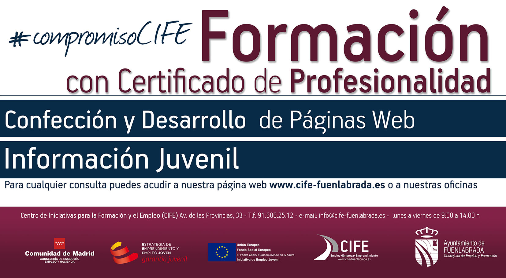 El Centro de Iniciativas para la Formación y el Empleo (CIFE) desarrolla cursos, para jóvenes de 16 a 29 años, encaminados a la obtención de Certificados de Profesionalidad en distintas familias formativas en el marco del Programa de Garantía Juvenil.