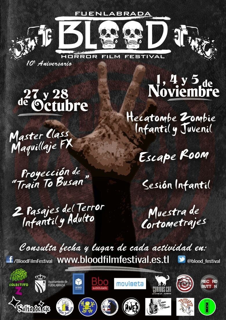 La Asociación Salto de Eje celebra en este año 2017 la X Edición del Blood Film Festival. Durante sus 5 días de duración podréis disfrutar de una amplia programación de actividades que incluye Pasajes del Terror, proyecciones de películas y cortometrajes, una Escape Room, talleres de maquillaje FX…