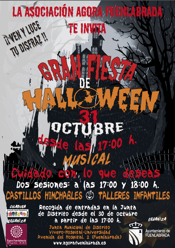 La Asociación Ágora Siglo XXI con la colaboración de Eureka Sur organiza su tradicional fiesta de Halloween el 31 de octubre a partir de las 17:00 h. en la sede de la JMD Vivero-Hospital-Universidad (Avda. del Hospital, 2).