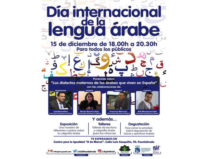 La Asociación Juvenil Al Umma de Fuenlabrada (AJUF) con la colaboración del Ayuntamiento de Fuenlabrada, celebrará en nuestra ciudad el Día Internacional de la Lengua Árabe con una jornada en la que se desarrollarán actividades para todos los públicos.