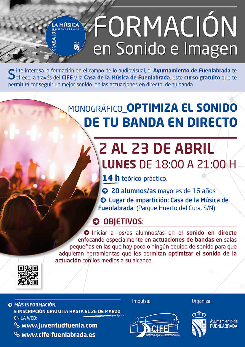 El itinerario formativo está impulsado por el CIFE y se realiza en colaboración con la Concejalía de Juventud e Infancia a través de la Casa de la Música de Fuenlabrada. Paraparticipar en los cursos y monográficos hay que cumplimentar el formulario de inscripción online disponible a continuación, antes de hacerlo te recomendamos que revises las normas de inscripción disponibles en esta misma página web.