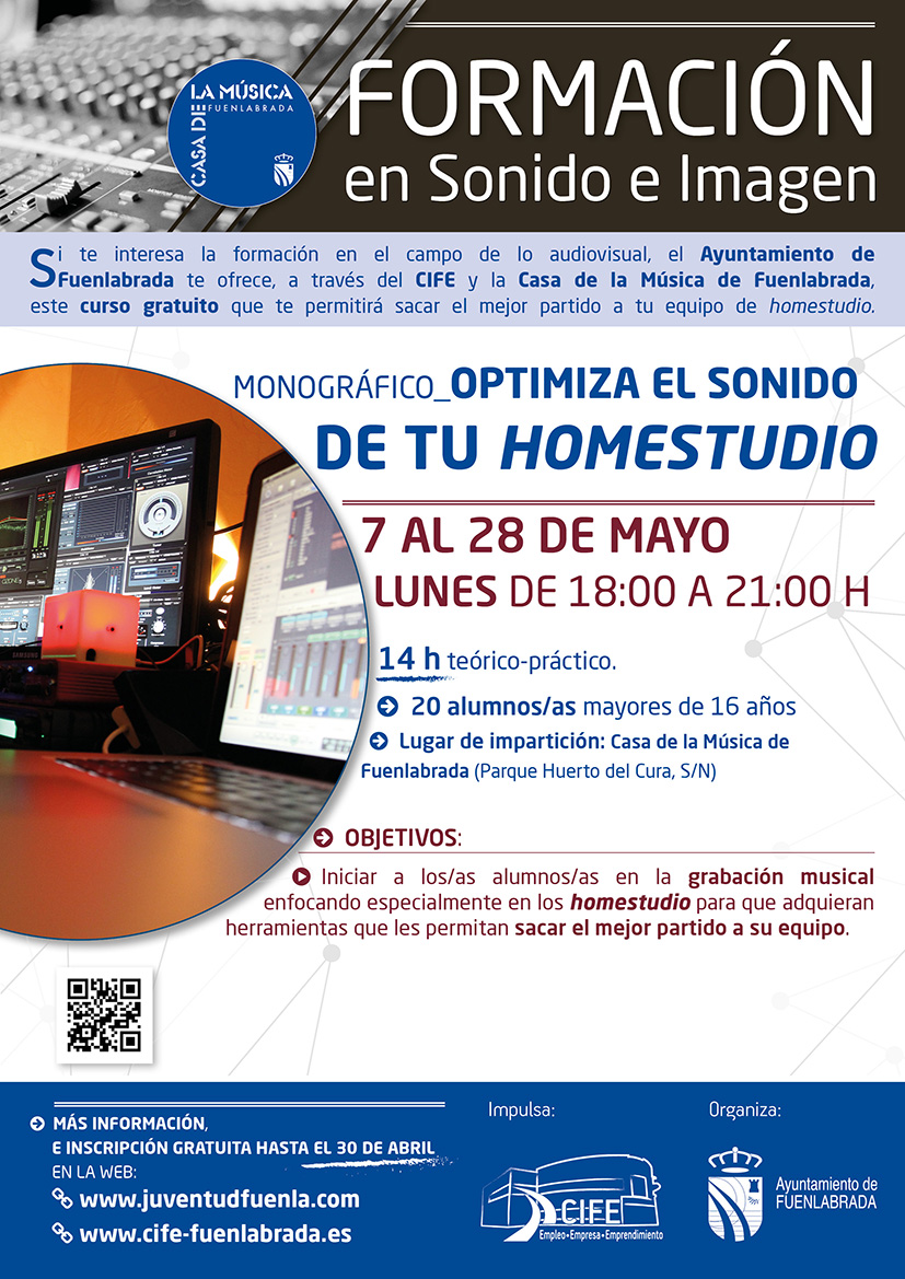 - Monográfico “Optimiza el sonido de tu Homestudio”: 14 de horas de formación que tienen como objetivo iniciar al alumnado en la grabación musical.