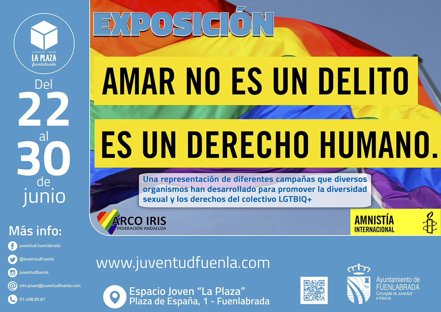 El 28 de junio se celebra el Día Internacional del Orgullo LGTBIQ+ y con este motivo El Espacio Joven La Plaza acoge la exposición AMAR NO ES UN DELITO. ES UN DERECHO HUMANO.