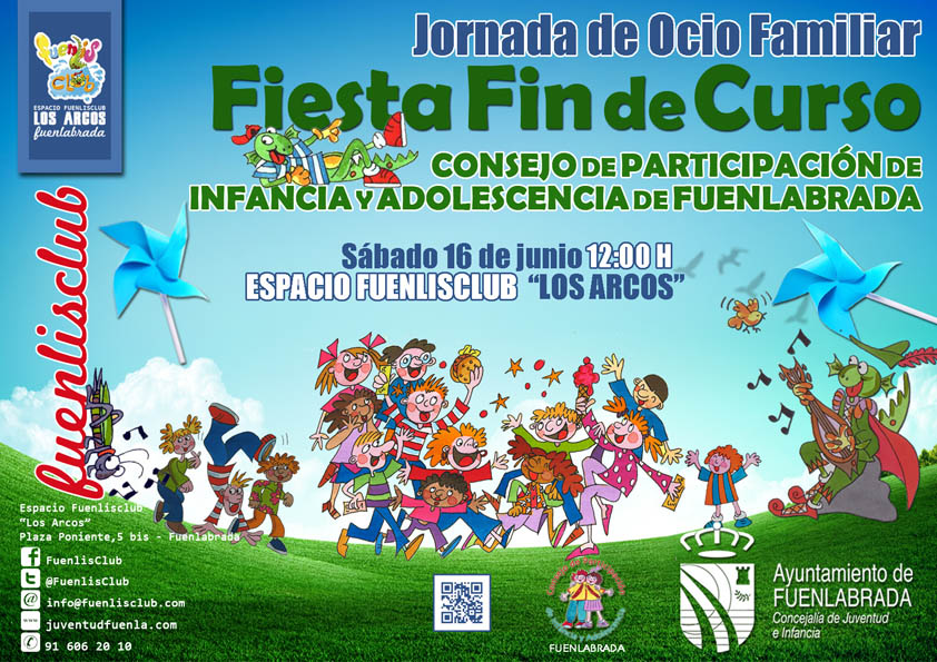 Este Sábado 16 de Junio a las 12:00h, en Espacio Fuenlisclub «Los Arcos» (Plaza Poniente 5 bis, Fuenlabrada) se celebra la fiesta Fin de Curso del Consejo Participación de Infancia y Adolescencia de Fuenlabrada. A ella serán convocadas tanto los Consejeros y Consejeras, como las familias y los agentes que han colaborado durante este curso en todas las sesiones y acciones de el Consejo.