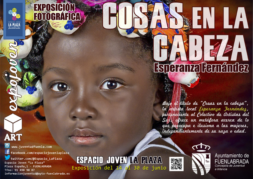 Desde el 14 de Junio hasta el 15 de Julio en la sala de exposiciones del Espacio Joven «La Plaza» tendrá lugar una exposición bajo el título «Cosas en la Cabeza» de la artista fuenlabraña Esperanza Fernández, perteneciente al Colectivo de Artistas del Sur. Esta exposición ofrece una metáfora acerca de lo que preocupa e ilusiona a las mujeres independientemente de su raza o edad.