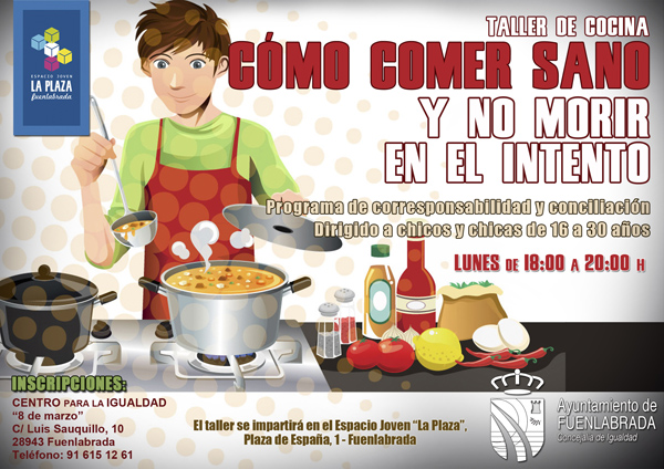 El taller «CÓMO COMER SANO Y NO MORIR EN EL INTENTO» tiene como objetivo que l@s participantes aprendan y conozcan que la cocina sana y saludable no está reñida con que sea fácil y divertida. Se elaborarán menús completos, pero antes se conocerán los utensilios de cocina, se harán presupuestos y listas de compra, además de ir a la compra. Este curso se impartirá los lunes de 18:00 a 20:00 horas