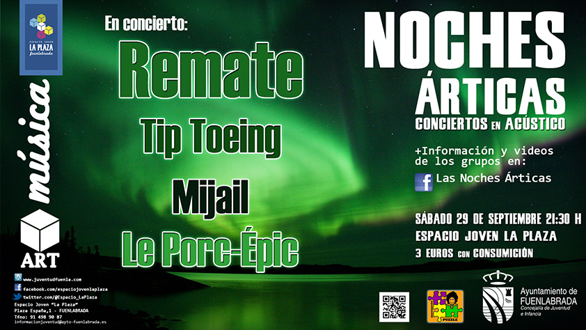 Noches Árticas “Conciertos en Acústico”, próximo sábado 29 de septiembre en el Espacio Joven la Plaza de Fuenlabrada a las 21:30 horas. (3 euros con consumición)