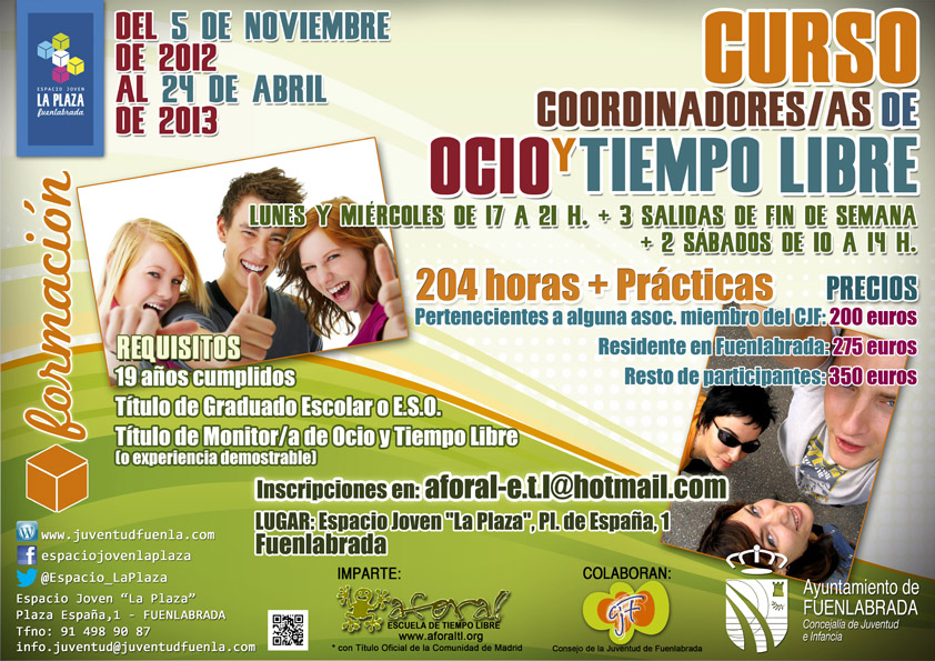 La Escuela de Tiempo Libre AFORAL, en colaboración con la Concejalía de Juventud e Infancia de Fuenlabrada y el Consejo de la Juventud de Fuenlabrada, abre el plazo de inscripción del Curso de Coordinadores/as de Ocio y Tiempo Libre.