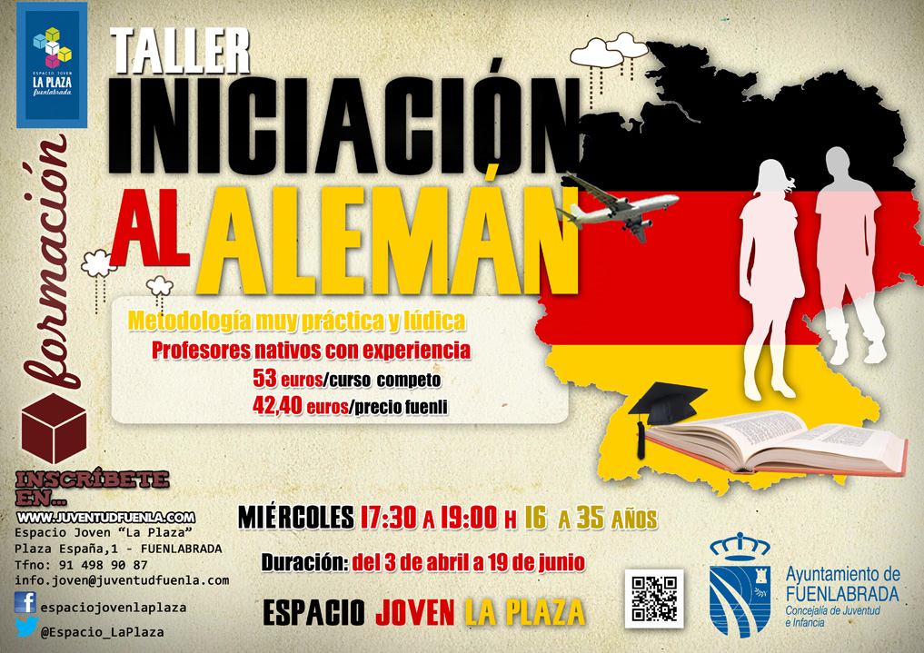 RT @JuventudFuenla: Abierta inscripción al Taller de «Iniciación al Alemán» para jóvenes en el @Espacio_LaPlaza #Fuenlabrada https://t.co …