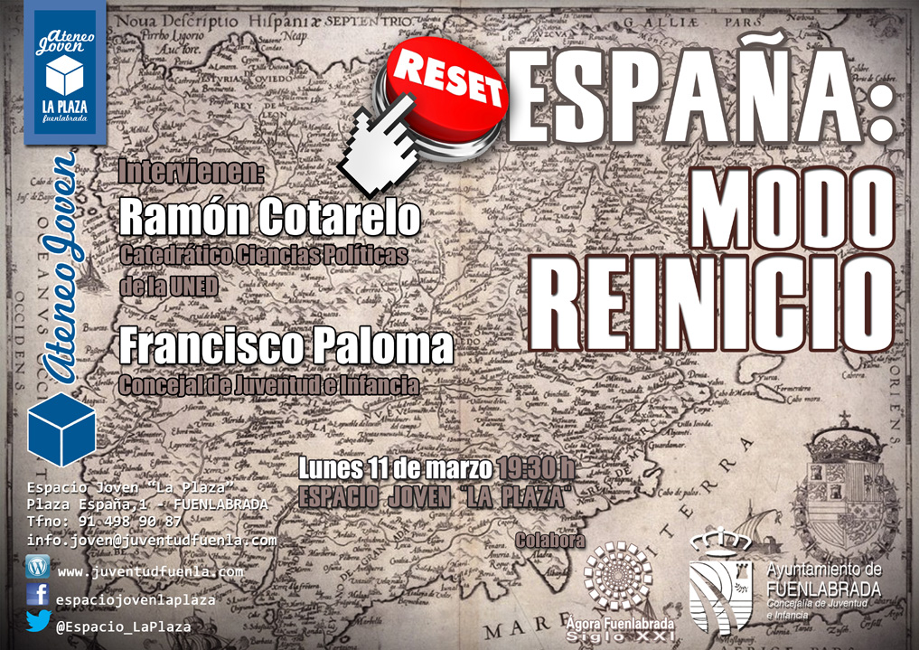 Lunes 11, 19:30h, Coloquio ESPAÑA: MODO REINICIO, con @ramoncotarelo https://t.co/Cz9Yg5zT6H #AteneoJoven #Fuenlabrada
