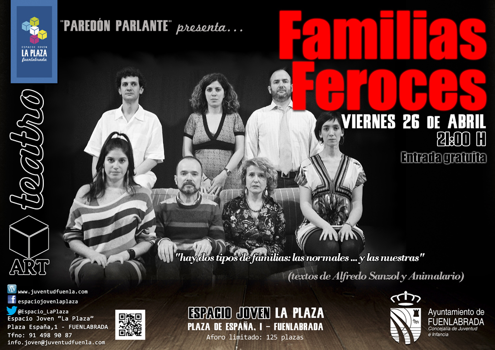 RT @JuventudFuenla: Viernes 26 de abril – Teatro: «Familias Feroces» por la Compañía Paredón Parlante : https://t.co/3w6clr0mcm #Fuenlabrada