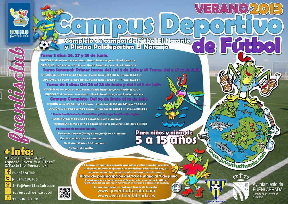 La pre-inscripción a todas las actividades se puede realizar en la web del Ayuntamiento de Fuenlabrada hasta el 7 de junio de 2013.