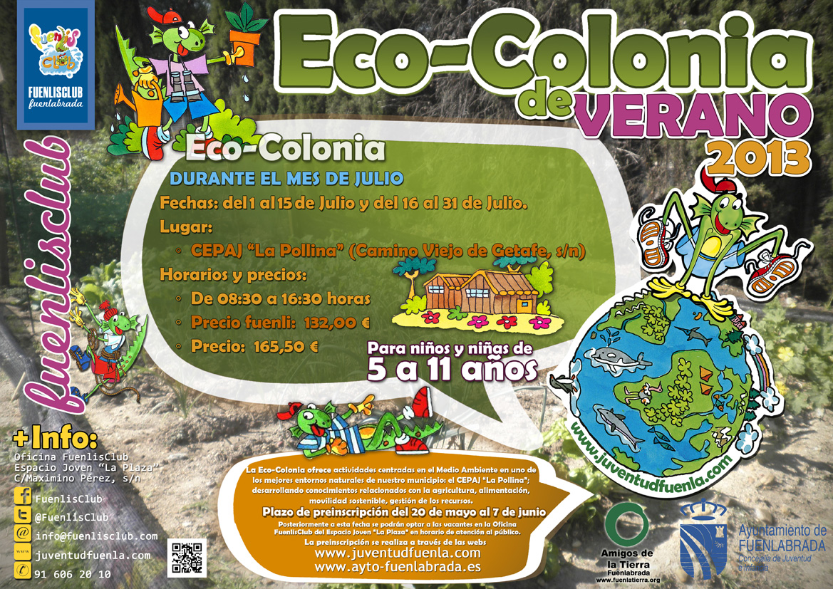 Las ECO-COLONIAS, actividad que incorporamos a la oferta de este año y que realizaremnos en el CEPAJ “La Pollina” en colaboración con Amigos de la Tierra Fuenlabrada, dirigidas a niños y niñas de 5 a 11 años se caracterizan por desarrollar un proyecto educativo centrado en el medio ambiente, para lo que se cuenta con un grupo de monitores especializados en educación ambiental. Las instalaciones del CEPAJ “La Pollina” están localizadas en uno de los mejores entornos naturales de nuestro municipio. Durante la actividad se potenciarán los conocimientos relacionados con la agricultura, alimentación, movilidad sostenible, gestión de los recursos…