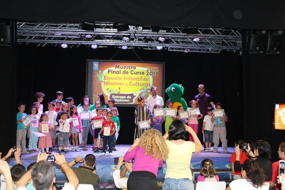 Durante la fiesta, los/as alumnos/as de la Escuela pudieron mostrar a sus familiares y amigos parte de lo que han aprendido durante el curso interpretando canciones en el idioma que han estado estudiando. Posteriormente, el Concejal de Juventud e Infancia, Francisco Paloma, dirigió unas palabras al público asistente y fue el encargado de entregar los diplomas junto a la mascota de la Concejalía Fuenli.