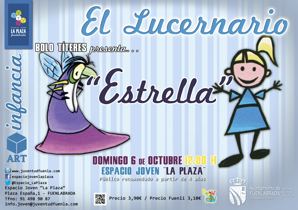 El domingo 6 de octubre a las 12:00 horas se inicia la nueva temporada del programa cultural infantil «El Lucernario» con la obra «Estrella» de la Compañía «Bolo Títeres».La obra de títeres cuenta la historia de Estrella, una niña traviesa que debe guardar cama con los ojos vendados. Durante el tiempo que ha de mantenerse así para recuperar la vista, se entretiene escuchando la radio y los cuentos que su madre le lee. De esta forma mantiene su fantasía y su sonrisa.